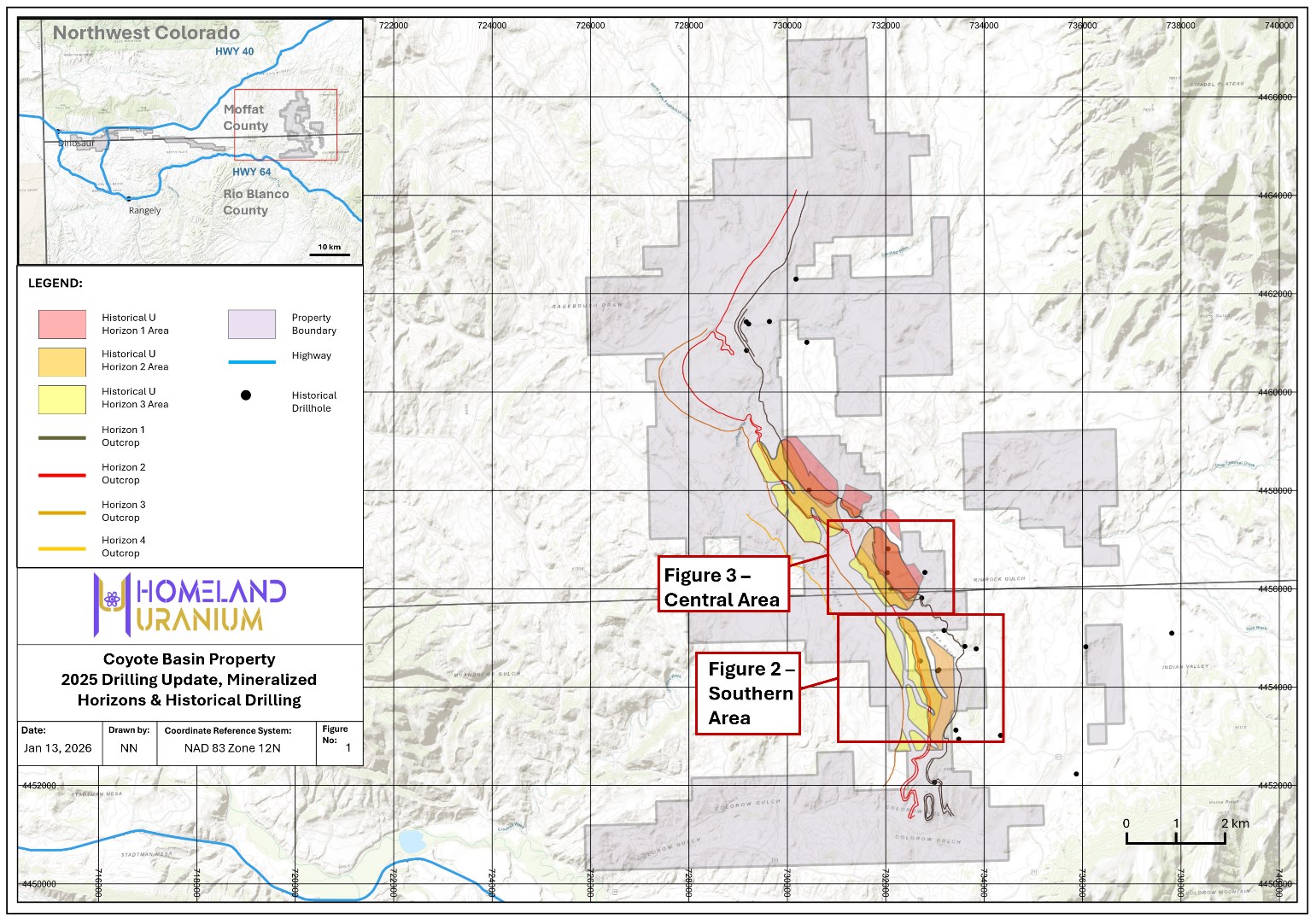Vancouver, British Columbia--(Newsfile Corp. - January 22, 2026) - Homeland Uranium Corp. (TSXV: HLU) (OTCQB: HLUCF) (FSE: D3U) ("Homeland" or the "Company") is pleased to provide a fourth update on the Phase II exploration drilling program at the 100% owned Coyote Basin Uranium Project (the "Project") (Figure 1).
